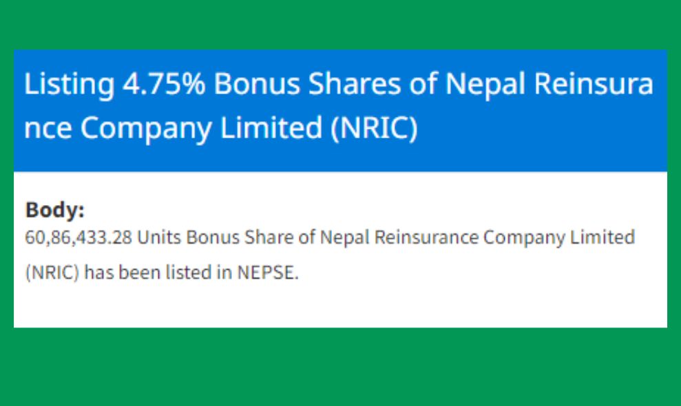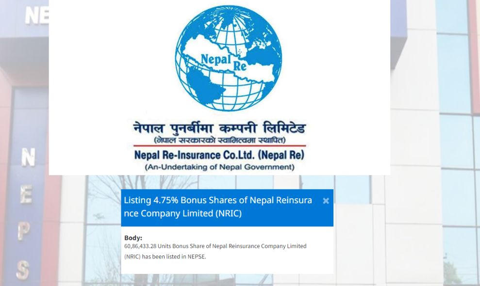 नेपाल पुनर्बिमा कम्पनी लिमिटेडको बोनस सेयर सूचीकृत