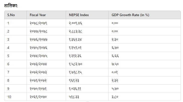 नेपालको आर्थिक वर्ष २०६९/२०७० देखि २०७८/२०७९ सम्मको GDP वृद्धि दर र नेप्से सूचकांकको तुलनात्मक अध्ययन: