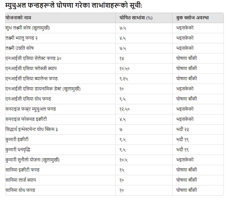 म्युचुअल फन्डले धमाधम लाभांश घोषणा गर्दै, केही फन्डले अझै लाभांश पाउने अवसर