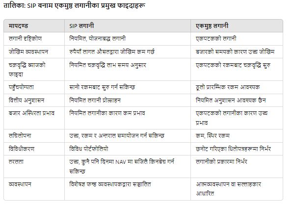 SIP सानो रकमबाट सुरु गर्न सकिन्छ, जसले लगानीकर्ताहरूलाई सजिलै लगानी गर्न मद्दत गर्छ।