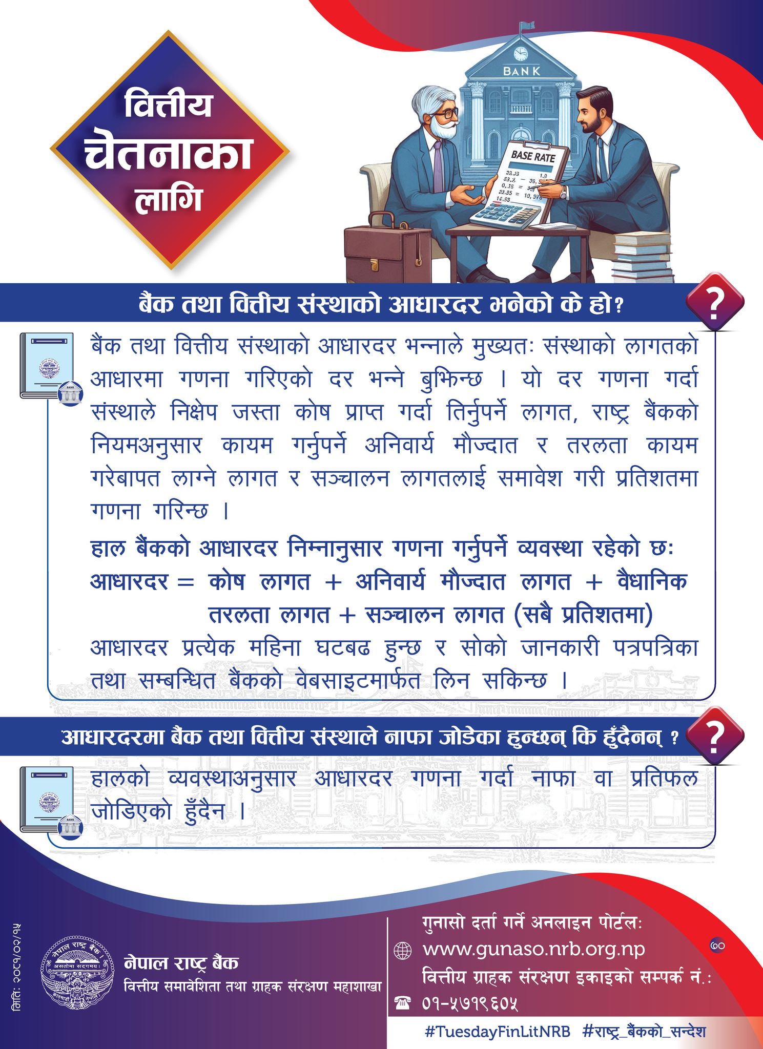 According to the information issued by Nepal Rastra Bank for financial awareness, the base rate is calculated as follows: