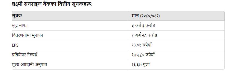 लक्ष्मी सनराइज बैंकका वित्तीय सूचकहरू: