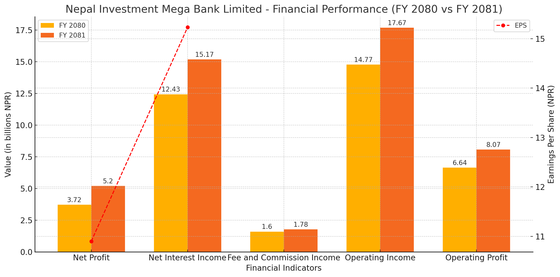 सञ्चालन आम्दानी र मुनाफा: बैंकको कुल सञ्चालन आम्दानी १९.६५ प्रतिशतले वृद्धि भई १७ अर्ब ६७ करोड रुपैयाँ पुगेको छ भने सञ्चालन मुनाफा २१.६२ प्रतिशतले वृद्धि भई ८ अर्ब ७ करोड रुपैयाँ पुगेको छ।