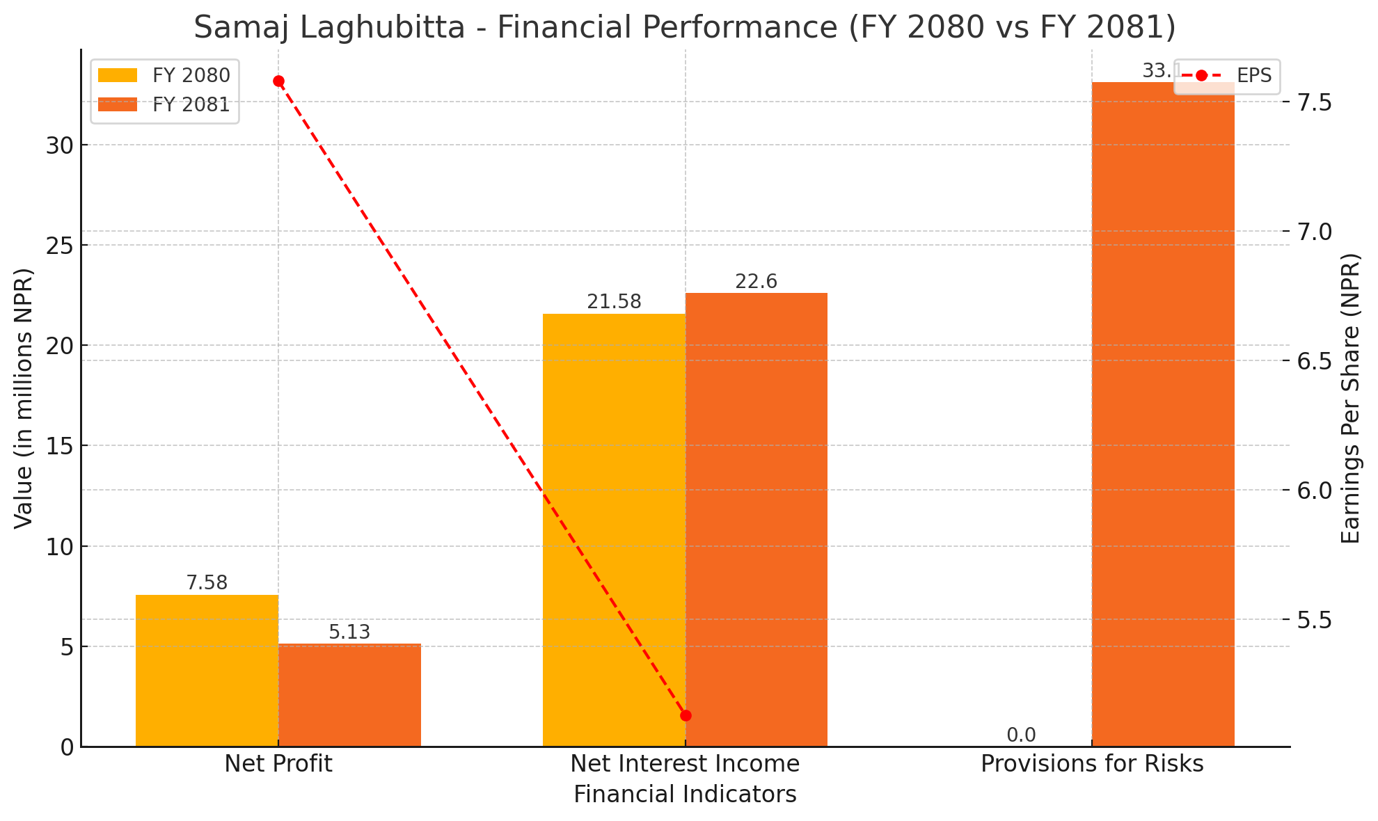 सम्भावित जोखिम व्यवस्थापन खर्च: लघुवित्तले सम्भावित जोखिम व्यवस्थापन बापत ३ करोड ३१ लाख रुपैयाँको व्यवस्था गरेको छ, जसले गर्दा लघुवित्तको सञ्चालन मुनाफा ऋणात्मक भएको छ। यो खर्चले लघुवित्तको खुद नाफामा प्रत्यक्ष नकारात्मक प्रभाव पारेको छ।